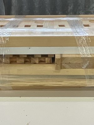 4 Frame Nuc option: each side holds 4 frames, making two 8 frame nucs. Uses a standard size 10 frame deep box, bottom board, and telescoping lid.