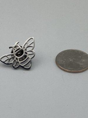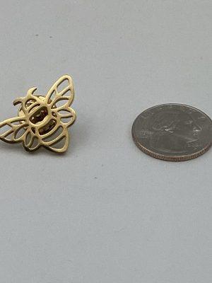 This stainless steel pin comes in the shape of a bee with its wings spread gracefully & features a metal clam shell backing. Comes in silver or gold color. Pin measures 2 inches long and 1 inch high.