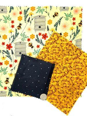 3 Packs have 1 5 x 5, 1 8 x 8, and 1 12 x 12 inch squares.🐝 What are Beeswax Food Wraps?