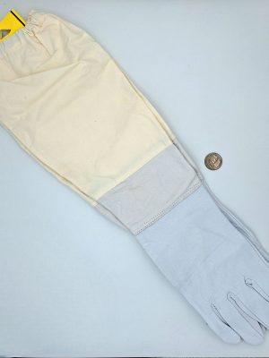 These goatskin gloves fit like your favorite pair of work gloves while being thin enough to feel the bees through it. Sleeves are made of a heavy duty canvas, keeping you comfortable and protected. Extra long leather cuffs help protect the sensitive skin of your wrists.