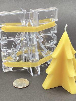 Small Tree Mold – Makes a tapered candle 3 1/4 inches tall 2 1/2 inches wide at the base. Takes 1.5 ounces of wax.