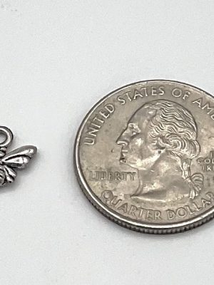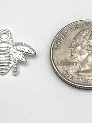 Silver Bee Charm that comes in two sizes, Mini and Medium. Mini has a length of 0.5 inches and the Medium has a length of 0.75 inches. Charm is completely silver.